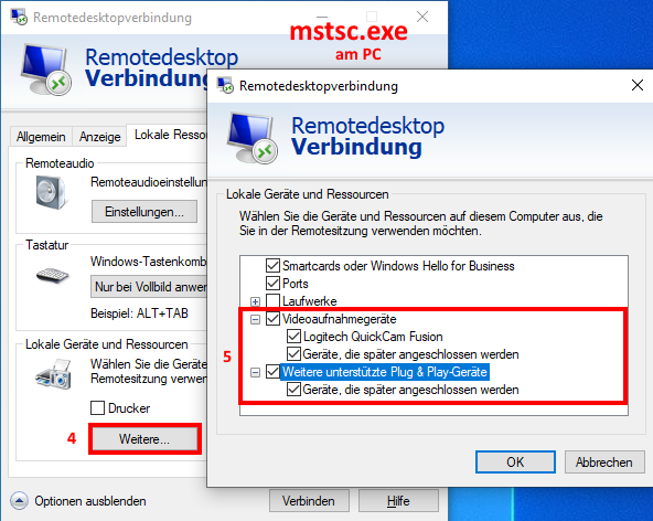 Am Remote-PC Audio und Bildverarbeitungsgeräte kontrollieren :